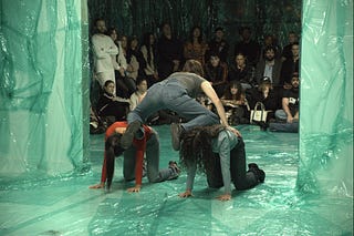 A backstage conversation between the dancers Cayleen Del Rosario, Benin Gardner, Amelia Heintzelman, Molly Ross, Isa Spector and artist Alexa West